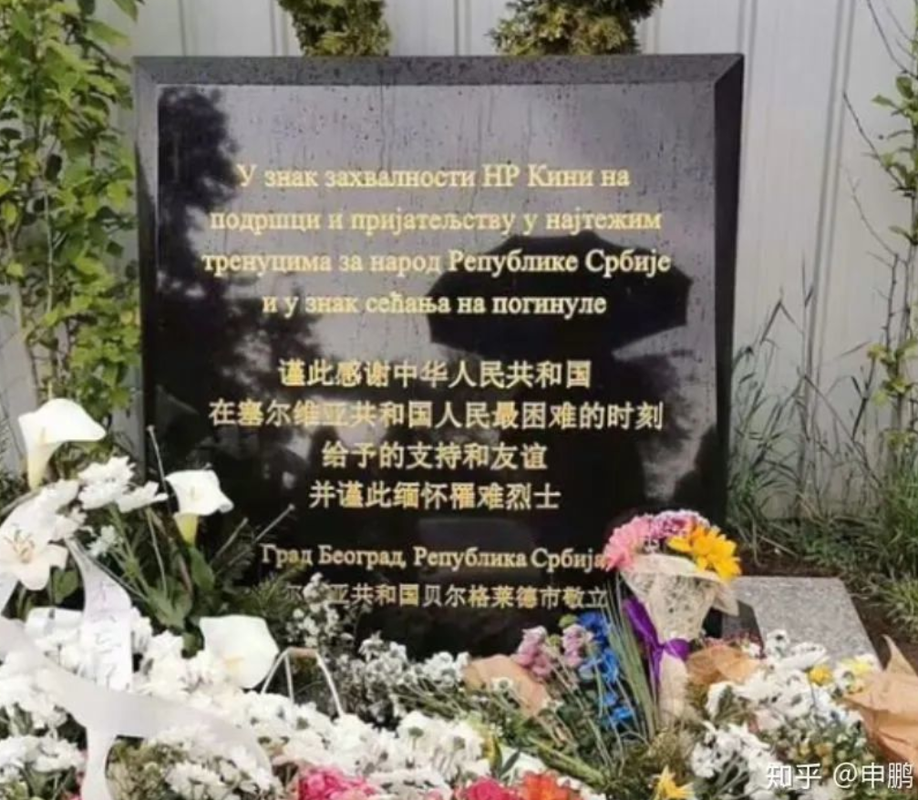 且不管塞尔维亚立场如何,我就知道贝尔格莱德中国大使馆遗址处,有一块黑色的纪念碑,这块纪念碑上用塞尔维亚文和中文写着:“谨此感谢中华人民共和国在塞尔维亚共和国人民最困难的时刻给予的支持和友谊,并谨此缅怀罹难烈士。”