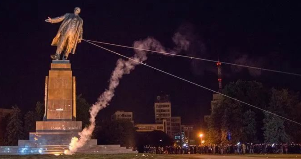 他们拉倒朱可夫和列宁的雕像,往老红军头上泼啤酒,掘红军坟墓,在公开场合悬挂纳粹标志,逼着“金雕”下跪……