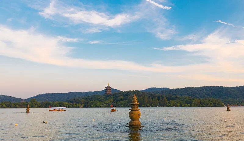 三潭印月,杭州西湖十景之一,位于西湖中部偏南,与湖心亭、阮公墩鼎足而立合称"湖中三岛",犹如中国古代传说中的蓬莱三岛,故又称"小瀛洲"。