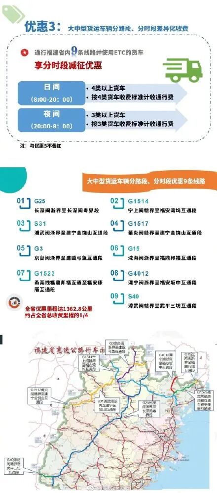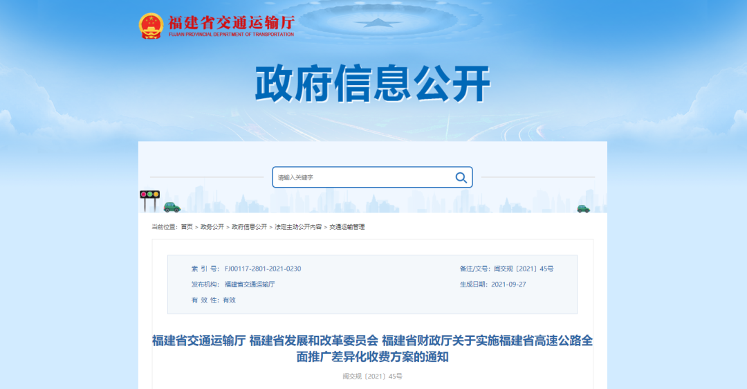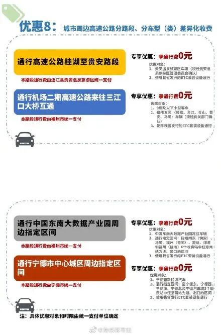 该省高速公路全面推广差异化收费8项优惠措施,自2021年9月28日起执行至2023年12月31日止。