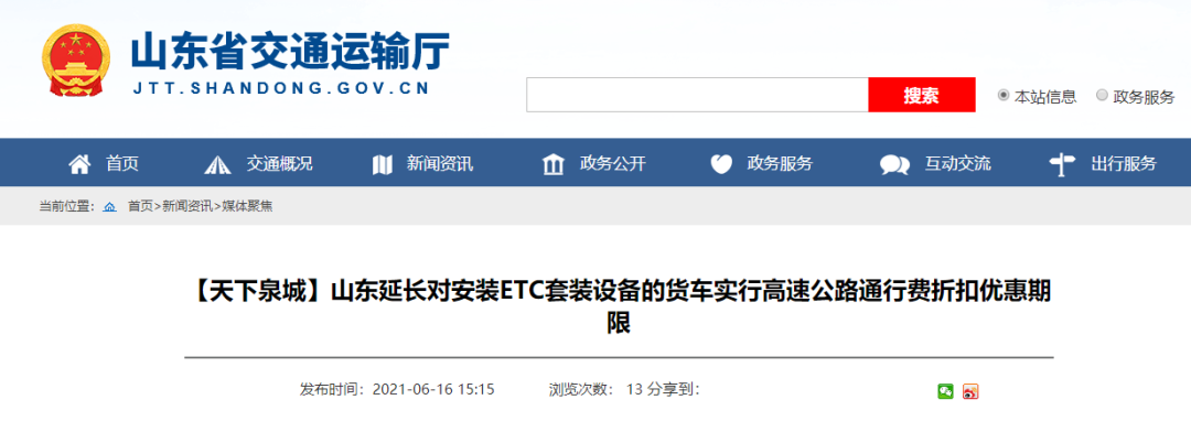 继续对行驶该省高速公路安装ETC设备的货车用户实行85折通行费优惠,政策执行期延长至2021年12月31日。