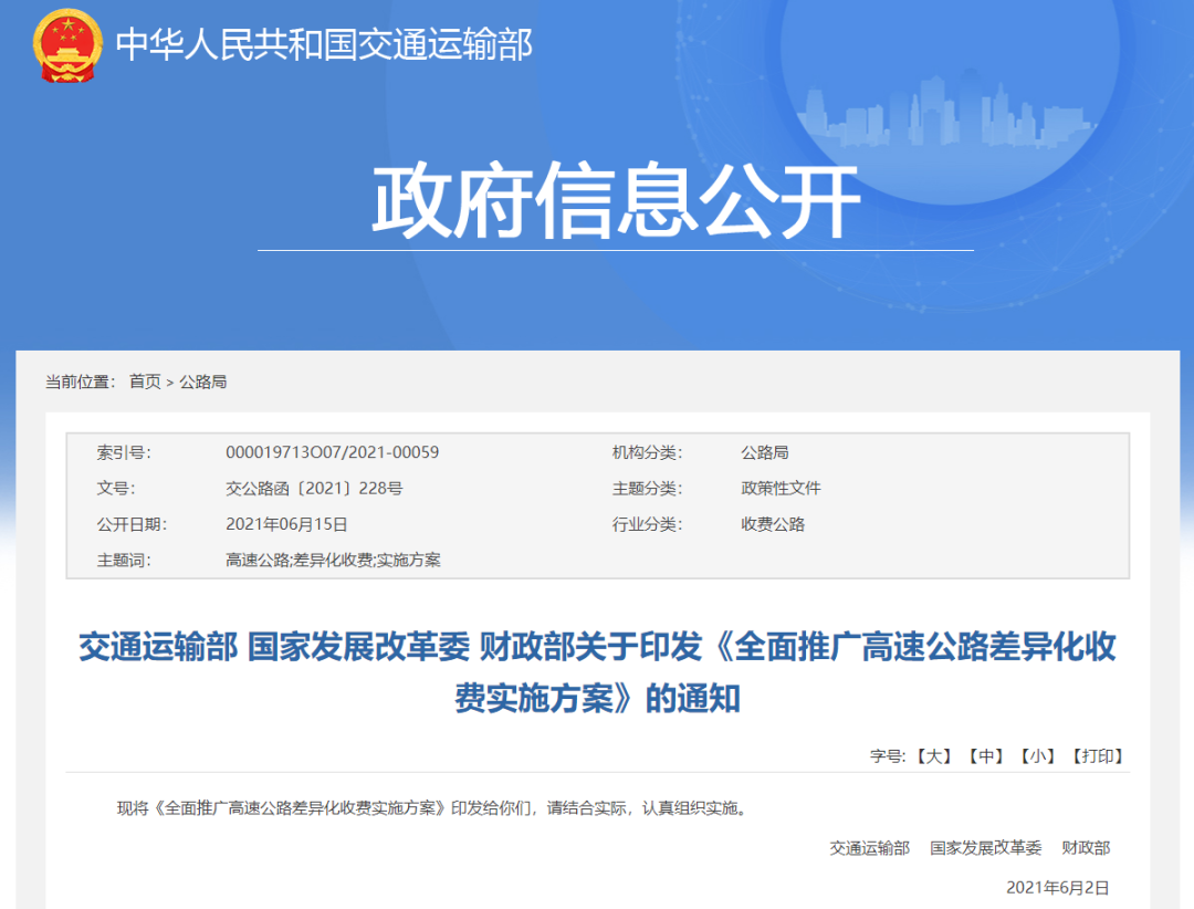 今年6月中旬,交通运输部、发改委、财政部联合发布了关于《全面推广高速公路差异化收费实施方案》的通知。指出要分时段、分路段、分车型、分支付方式等多种形式进行收费,持续提升高速公路网通行效率降低高速公路出行成本。