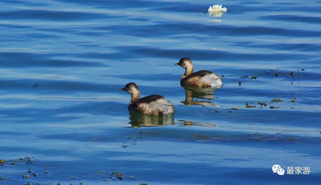 满湖的野鸭,天鹅,大雁等水禽歌声嘹亮