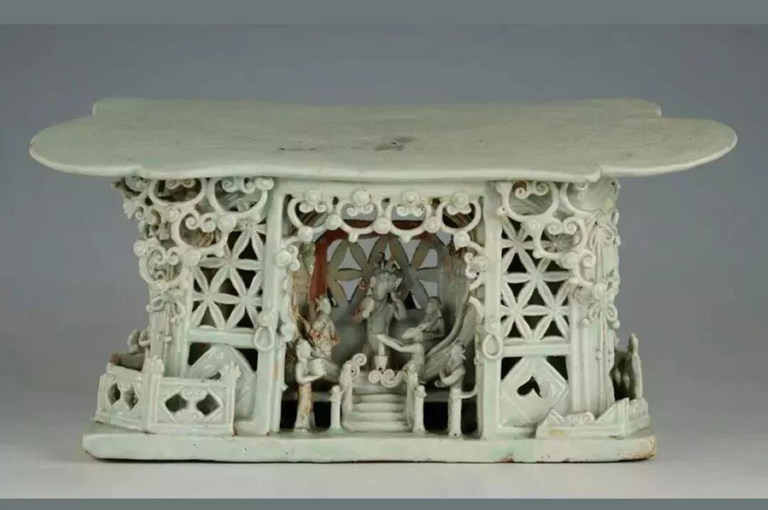 元镂空广寒宫影青釉瓷枕↑ 大同市博物馆