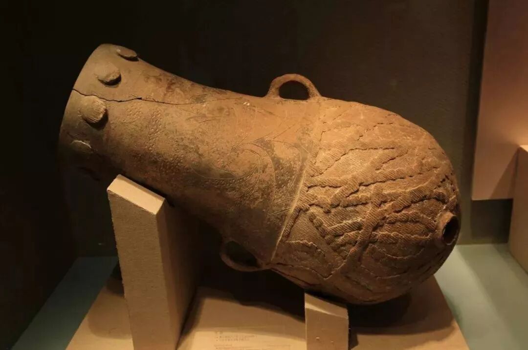 裸体人像彩陶壶↑ 青海柳湾彩陶博物馆