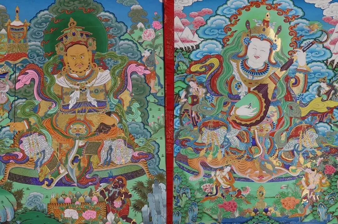 唐卡《四大天王》↑ 黄南州热贡艺术博物馆