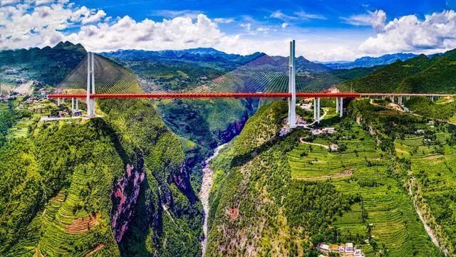 北盘江第一桥桥面距江面垂直高度达565.4米(相当于200层楼的高度)目前为世界第一高、的钢桁梁斜拉桥。荣获“世界最高桥”之称!