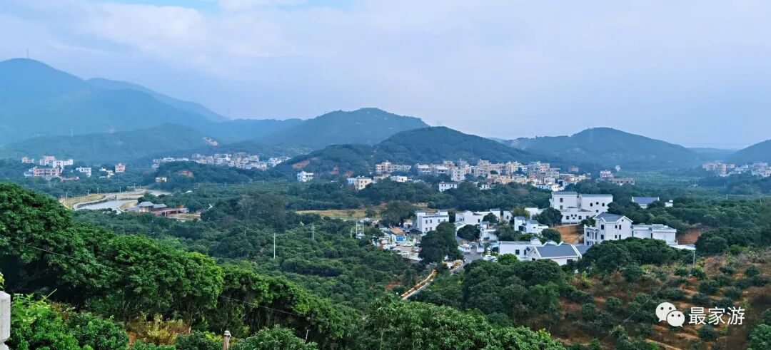来到此行目的地红荔阁之后,发现地处一个小山的山顶上,视野非常开阔,可以俯瞰根子镇以及周边好几个村庄的全景,当然,高处不胜寒,山顶上的风也比较大,最重要的是停车位很有限,孩子们的活动范围也受到较大限制,爱人实在不想在此驻车,只好在参观完红荔阁和前面提到的那株金蜜荔之后下山。