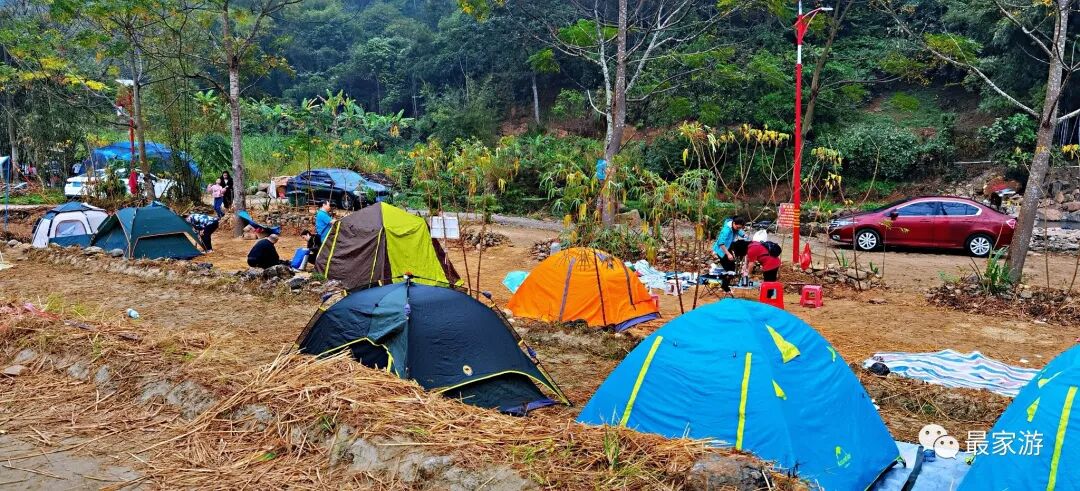 离开之前,鉴于当时还是周末,我又去温泉边溜达了一圈,又一次看到了对于这个偏僻小山村来说相当火爆的露营场面,仔细看了一下车牌,除了阳江本地的,还有如茂名、江门、广州、深圳、佛山等地的车牌,看来这个名不见经传的野温泉已经开始走向广东全省了,当然,像我们这样挂着晋牌等外地车牌来此的是少之又少。