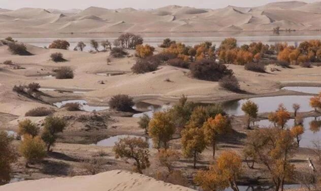 塔克拉玛干在维吾尔语意思为“走得进,出不来”,更被称作“死亡之海”,可是在在轮台的塔里木河附近沙漠地区,却能看到成片的胡杨林。