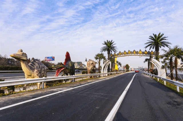 而且这里是真的有一座小型的恐龙主题游乐场,满眼皆是恐龙的雕塑和建筑,重点是它距离常州恐龙园不到10公里。