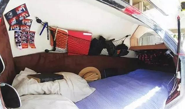 别看这款房车的造型不怎么美观,但功能还是相当强大的。因为里面不仅可以轻松躺下一个成年人,同时像照明、简单的储物功能也样样具备。而且,就连厨房功能也是具备的,虽然空间不是很大,但放置一些食物和简单的炊具还是没问题的。