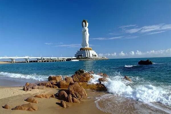108米的海上观音比自由女神还要高15米,是世界最大的白衣观音造像,也是世界上最大的石像。
