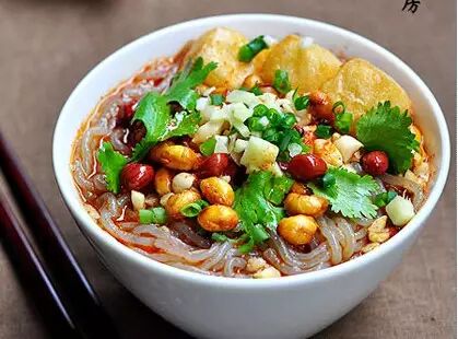 重庆酸辣粉的出名程度我想不亚于沙县了吧,主要采用红薯粉加工而成,物美价廉,又酸又辣,让人欲罢不能。