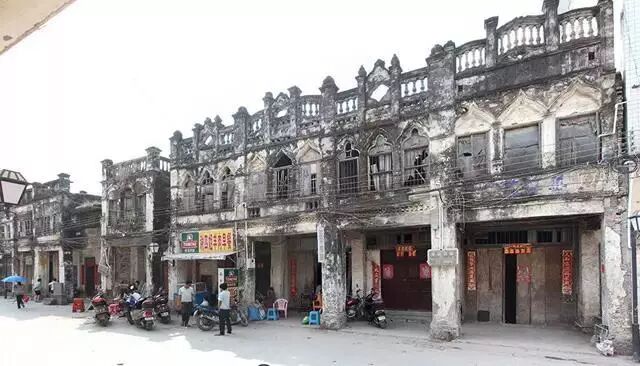 铺前最具特色当属骑楼,由当年的“番客”们荣归故里时而建。铺前骑楼造型秀丽,风格优雅,线条纤细柔和,卷曲带风洞的山花墙,勾勒出一道异常美丽的天际线,有如文昌人温柔、儒雅的性格。然终究岁月蹉跎,这些骑楼已多数年久失修,剩下斑驳陆离的外形,残留些模糊的印记,与曾经的高雅风范。