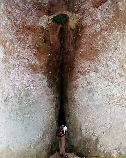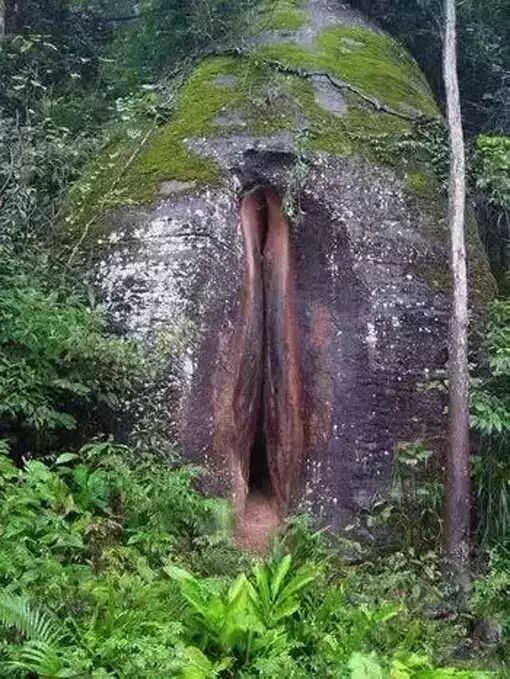 宣汉县百里峡风景区腹地,有一处着名景点叫羞女岩。羞女岩其实就是山峰中间的一个大裂缝,这个裂缝就形成了一个岩洞,和女阴相比,既是形似,更是神似。