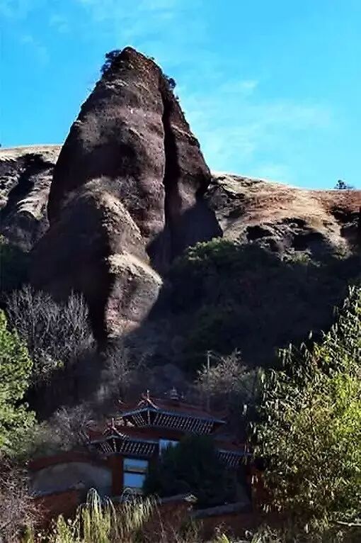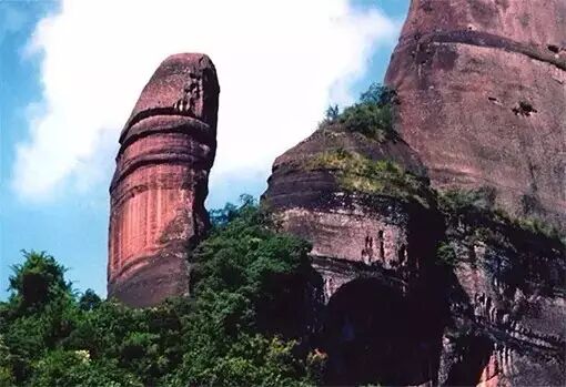 金枪峰与南边的仙女岩遥相呼应,几千年来民众对此女阴与男根的象征物,当作生殖之神顶礼膜拜。