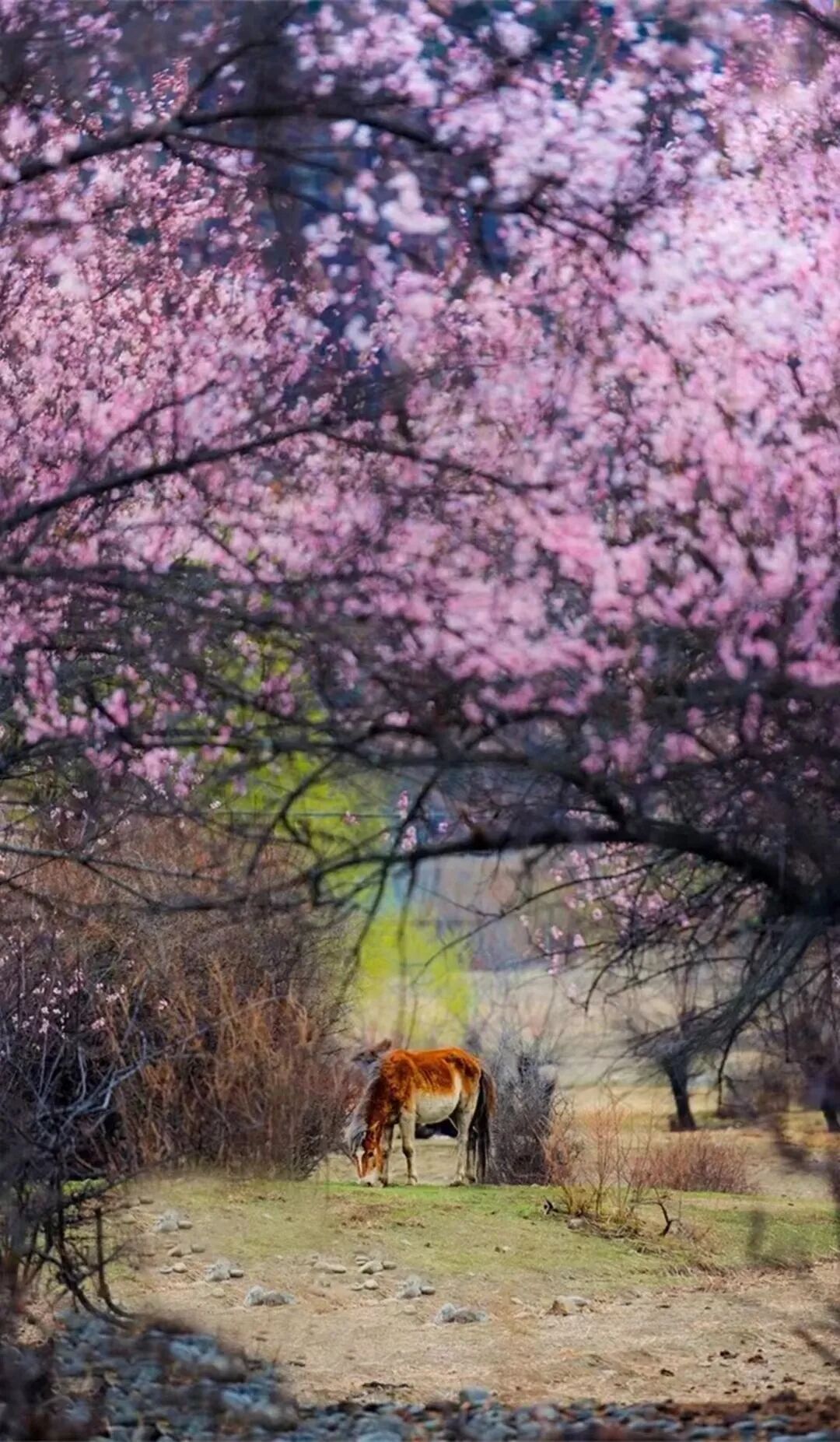 盛开的桃花依偎在高耸入云的雪峰之下,当浓郁的芬芳一点点渗入灵魂深处,繁花缤纷的潇洒如此扣人心弦。
