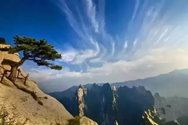 华山绝壁巍峙,奇峰耸立,山路险峻,摄人魂魄,奇险无比,有华山自古一条路的说法。落雁峰顶松树很多,间杂着桧柏等常青树,放眼望去,能把华山遒劲险峻的风骨看得真真切切。