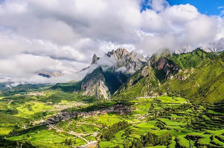 去扎尕那,古老的村庄、多彩山水和纯朴的民风。森林、蓝天、草地、梯田、民居五色相间,像似一幅浓墨重彩的古典油画,共同组成了这片仙境。