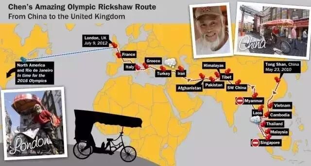 在支持完上海世博会之后,他办好一系列签证,开始了骑往伦敦的旅程。