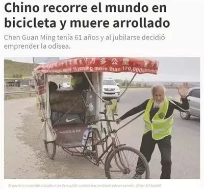 不幸的,在阿根廷当地时间10月18日晚,一辆载满货物的卡车撞向62岁的陈冠明,这位中国壮士的环球之行被迫画上句号。