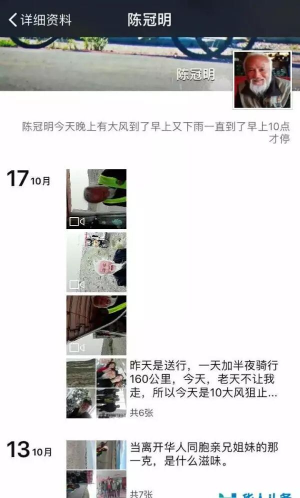 在穿越北美之旅中,老陈得到了众多华人的热心相助,一路上有华人的地方,就有兄弟姐妹们的喝彩声和帮助,世界各地的华人是他一路走来的坚强后盾。