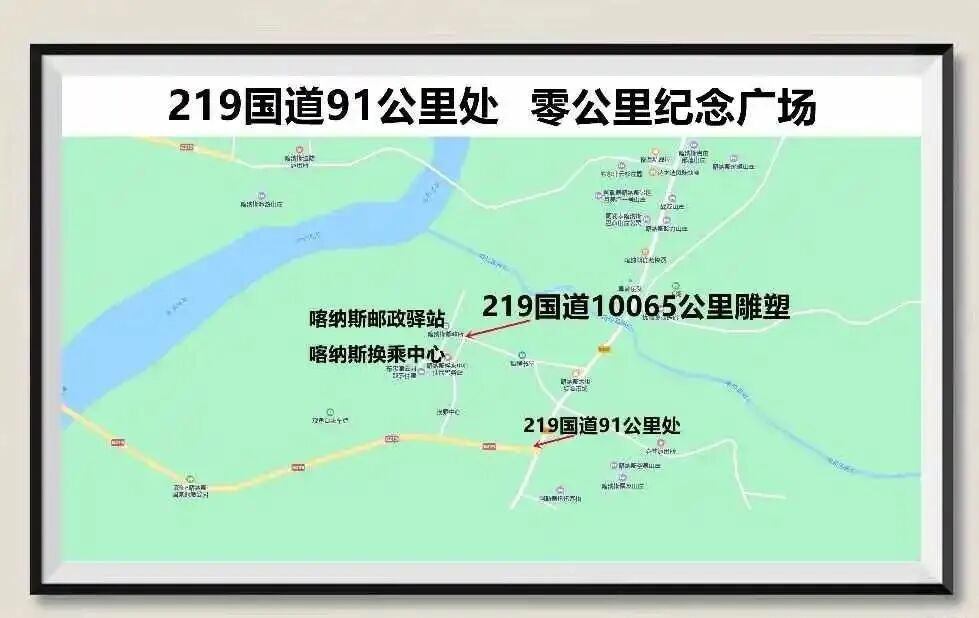 据悉,219国道10065雕塑于2021年9月28日揭牌,该雕塑位于219国道0公里纪念广场,即新疆喀纳斯景区的游客换乘中心,但是此地实际为 219国道的91公里标识处,并非真正的0公里处,已建成的雕塑需要等219国道的0~90公里的路段规划修建好之后,再行搬走,目前,新219国道0~90公里尚没有路基和路牌,那是预留给从(哈纳斯)他乌口岸穿越喀纳斯景区连接的,当然不通。
