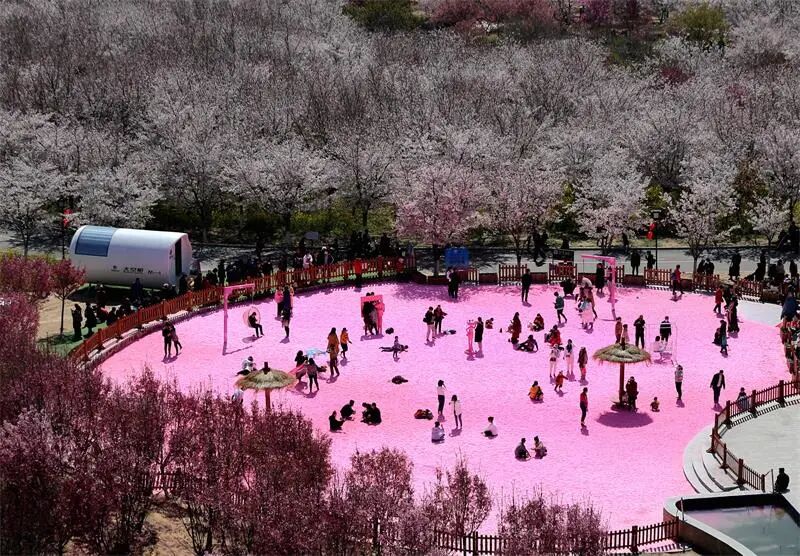 3月份开始,荥阳古柏渡丰乐樱花园盛装开园。樱花的花期极短,从开花到凋谢一般7至15天。为了使市民更好的欣赏樱花的美丽,丰乐樱花园对早樱、中樱、晚樱品种进行合理搭配,将樱花花期延长至45天。
