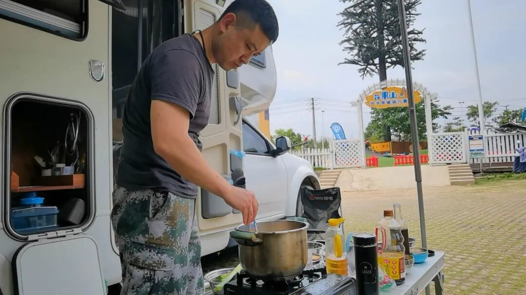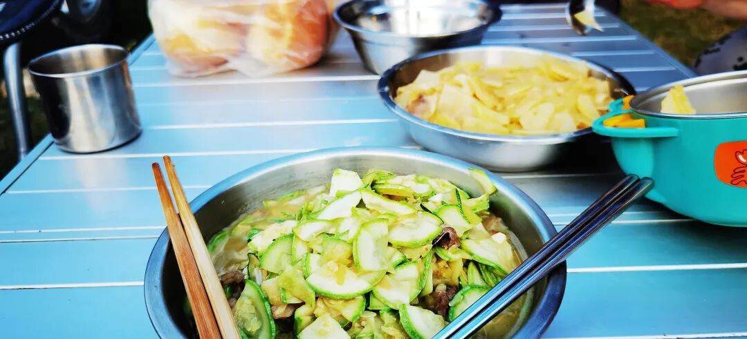十几年未见面即更刮目相看,不得不说那哥们的厨艺是突飞猛进的了,首次用我房车上的厨具,在还不顺手的情况下,一会功夫就弄了3个菜,这对于已经离家一周左右,风餐露宿街头近一周的我来说,顿时感受到了家的温暖,看来在后续的旅途之中我将会很有口福了。