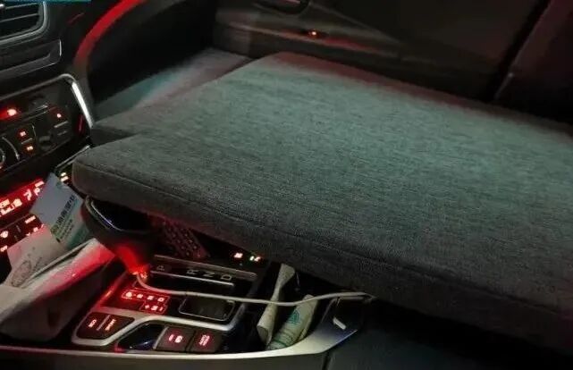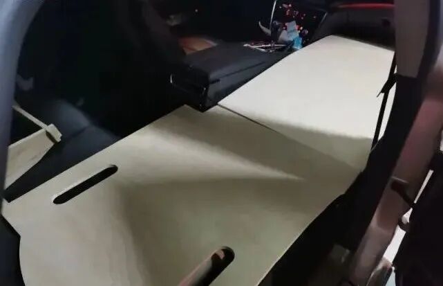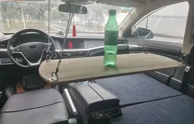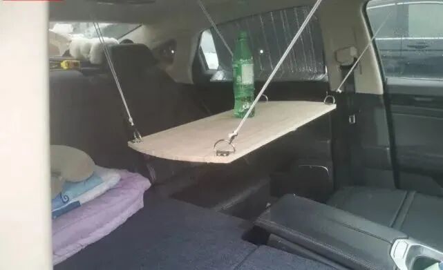 加装了个吊桌,可完美收纳于天窗处,铺床行车时均可用,行车时需要与前排座椅固定,承重性能稍差,只可放饮料泡面笔记本。