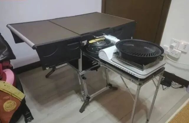 双十一购入一套移动厨房,满足两大一小户外吃饭错错有余,收纳后体积较小,刚好可放在行李架上,出行时用几根扎带固定即可。
