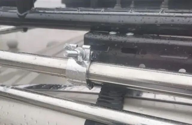 结合我的车子的实际情况修改了下,之前加固用的角钢就派上用场了,用来固定天幕架,纵向杆子用的伸缩晾衣杆,横向杆子用的网鱼的操网杆,用五金件固定,杆子细了就套橡胶管子解决,架子可以直接拉出来固定,操作简单,架子了拉出2.5米,前后可在1.6至3.6米之间调节,架子的脚收起来的时候丑了点。