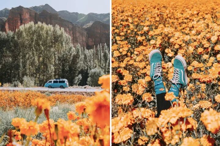 在七彩丹霞的花海中睡一个慵懒的午觉