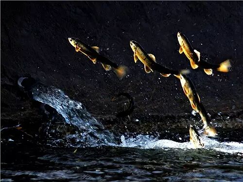 据说3岁以上的雄鱼和4岁以上的雌鱼,都会踏上这次远征,自然生存法则在湟鱼洄游时表现得淋漓尽致,湟鱼洄游时在水深处积蓄力量,往上游台阶鱼跃时,瞬间窜上去,一般情况下,湟鱼能跳到它体长两倍多的高度,最高的能跳到五六十厘米。