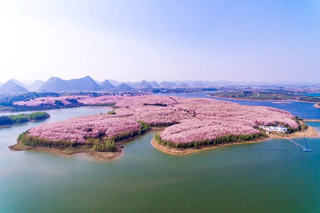平坝樱花园坐落于高原明珠红枫湖畔,是目前中国集中连片种植面积最大的樱花基地,万亩樱花主要分为两片,一片在红枫湖畔上游溪河入湖口,就是大家熟知的平坝农场,即贵安樱花园,另一片位于清镇市红枫湖镇大冲村、右二村,即红枫樱花园。