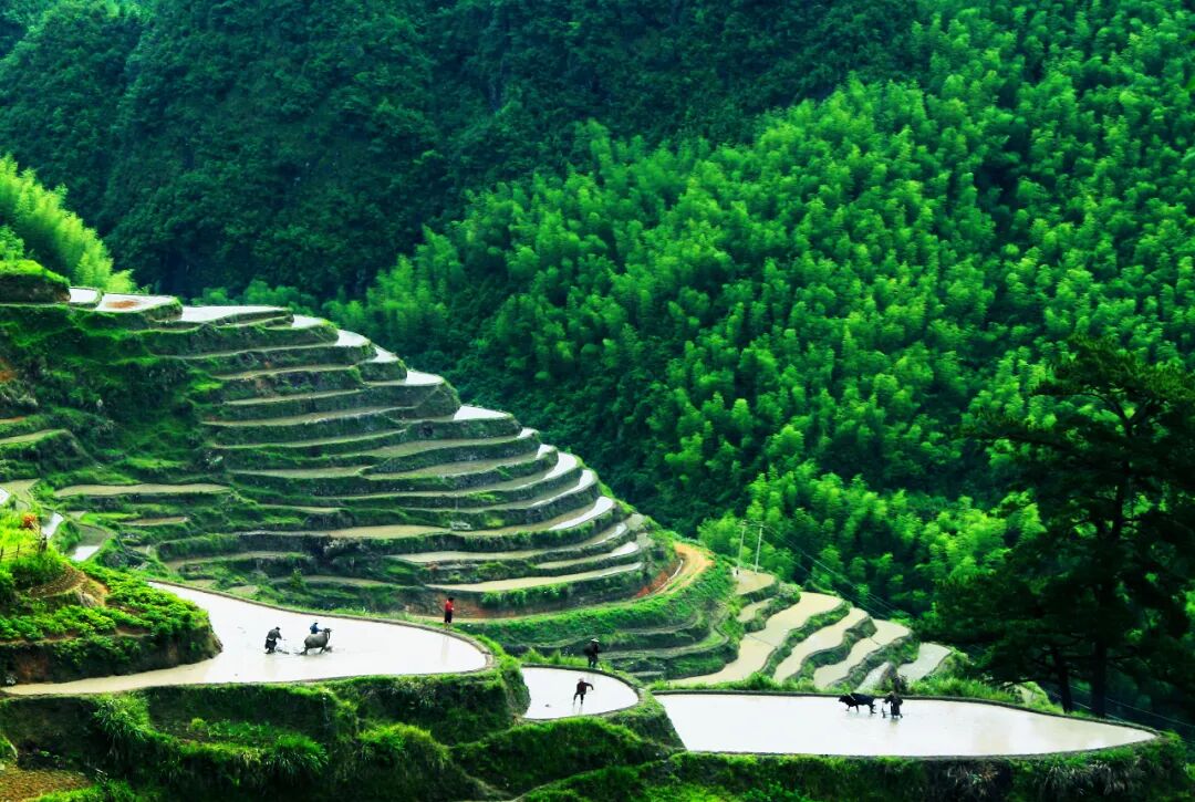 四周绵延着梯田和茶园,