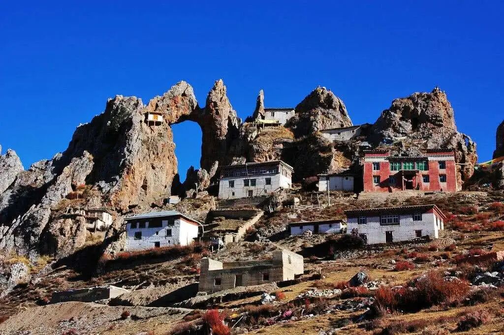 孜珠意为六座山峰,这里异峰突起,挺拔险峻,怪石嶙峋,禅祠叠叠,孜珠寺就坐落于山顶悬崖峭壁之上,依山而建,规模最大、值得注意的是,这里的转山都是逆时针的。