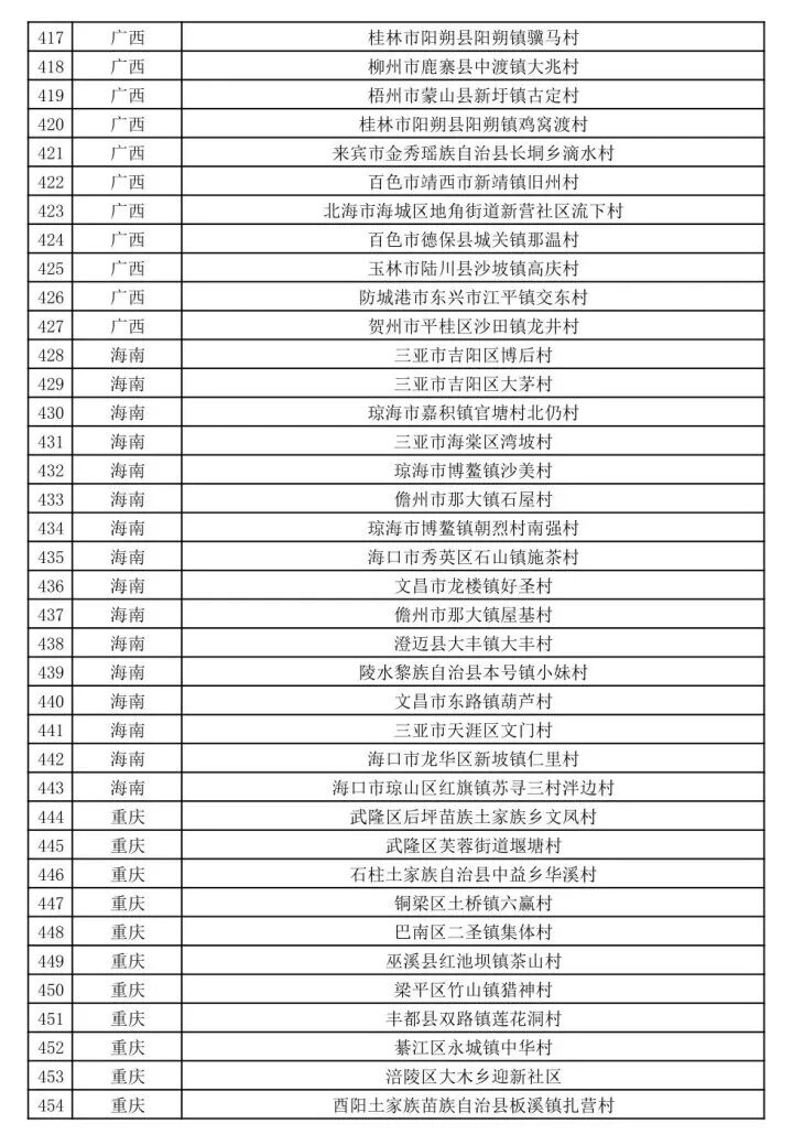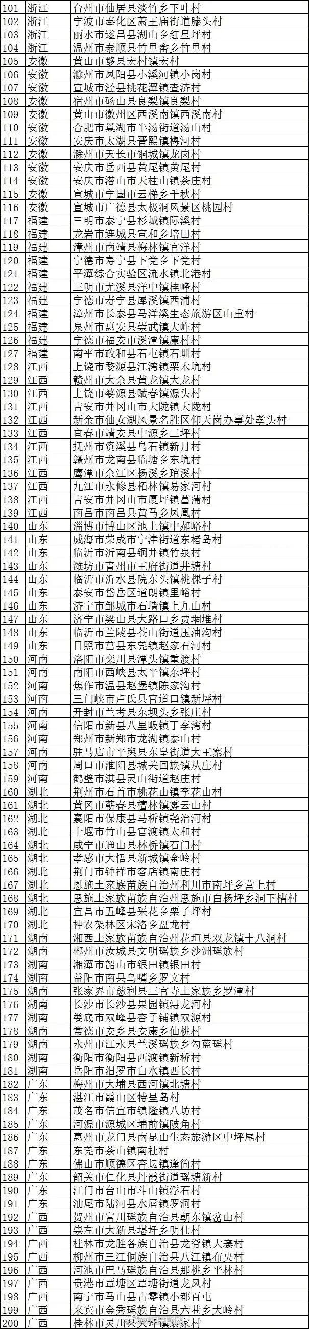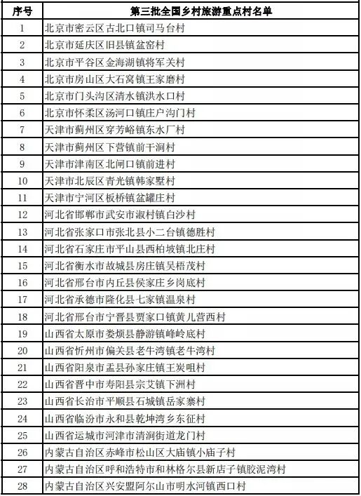 第三批全国乡村旅游重点村名单(199个)