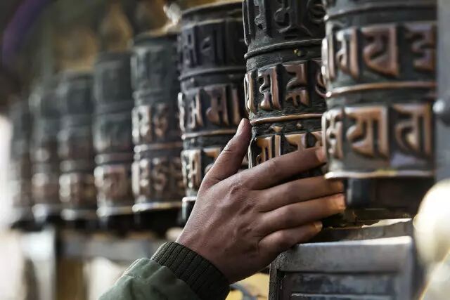 10. 领会无数转经筒,摇动着的无数个希望藏传佛教认为,持颂真言越多,越表对佛的虔诚,可得脱轮回之苦。因此人们除口诵外,还制作“嘛呢”经筒,把“六字大明咒”经卷装于经筒内,用手摇转,藏族人民把经文放在转经筒里,每转动一次就相当于念颂经文一次,表示反复念诵着成百倍千倍的“六字大明咒”。有的人还用水力、灯火热能,分别制作了水转嘛呢筒、灯转嘛呢筒,代人念诵“六字大明咒”。