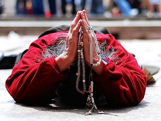 5. 与磕长头的朝圣者交流,体验信念与虔诚