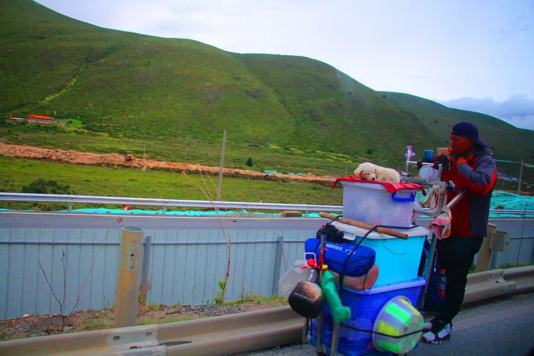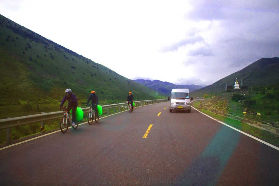 午饭后,终于走上318国道,这就是大名鼎鼎的景观大道川藏南线了!国内任何一个版本的最美公路评选,都不会少了这条路。初上318,景色倒也一般,双向两车道,车来车往,骑行者很多,来往车辆擦身而过,感觉还是挺危险的。还有推小车的,踯躅而行,边走边开直播,不管出于什么目的,这份毅力,足堪点赞。