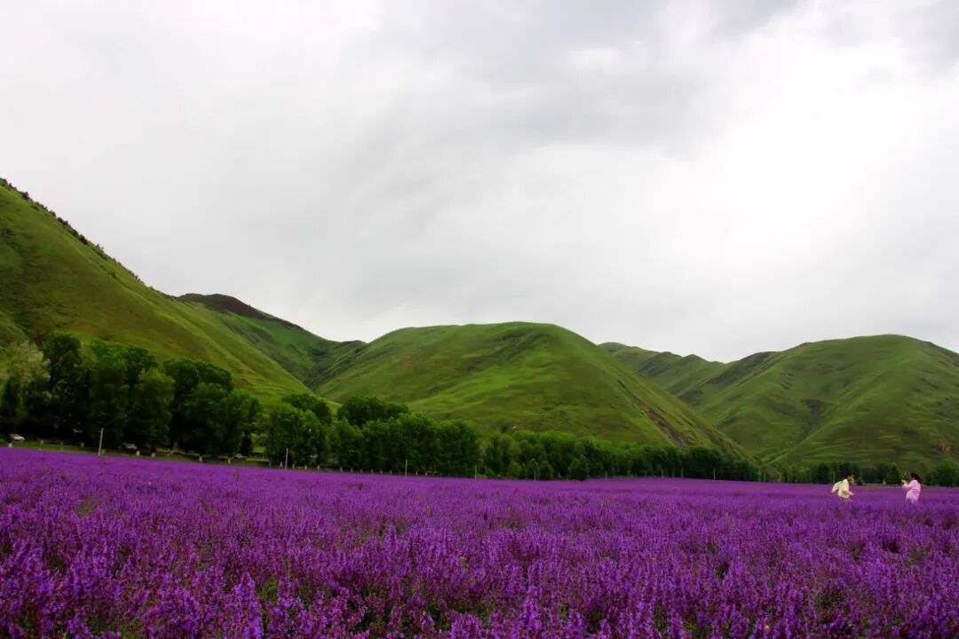 到新都桥后,右拐,下318国道,沿215省道北上。很快来到薰衣草花海,一大片紫色的海洋,紫的心醉,背景是高大的青山,绿的纯粹。下车游览,各种角度地拍照加摄像,想把这绝美风景,原汁原味地定格。
