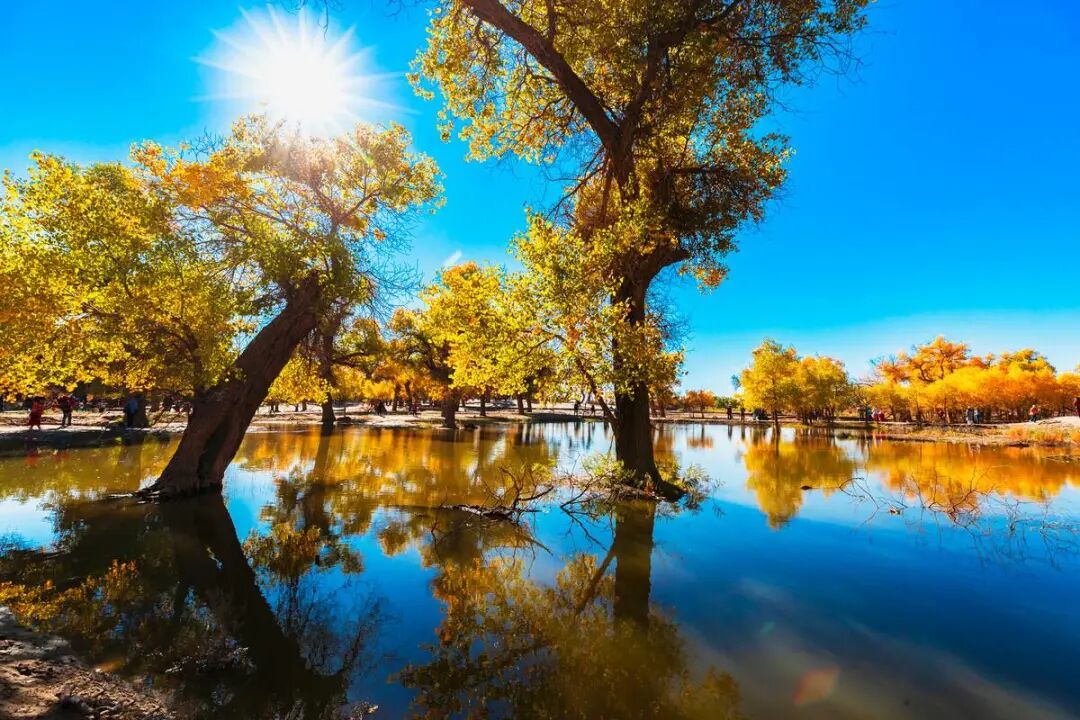 这里是胡杨的故乡,也是大漠的居所,在这里可以欣赏到大漠,湖泊,千年之久的胡杨,胡杨有很强的生命力,能顽强地生存繁衍于沙漠之中,有“生而一千年不死,死而一千年不倒,倒而一千年不朽”的说法,因而被人们赞誉为“沙漠英雄树”。