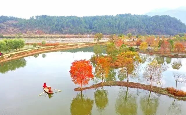 每年的深秋,罗田九资河镇的山上,田野间,池塘边到处都可以看到色彩斑斓的乌桕树红叶,在如镜般的池塘那头曲线塘埂上生长着许多乌桕树,有红色,有黄色,还有青色的树叶倒映其中,层层递进,尉为壮观。而远处连绵起伏的群山与蓝天白云相接,真有一派白云绕青山的景致。一叶小舟荡漾水中,更让人觉得自己来到了仙境,所以在我的旅游历程中,我认为这里的景色是让我留连忘返的。