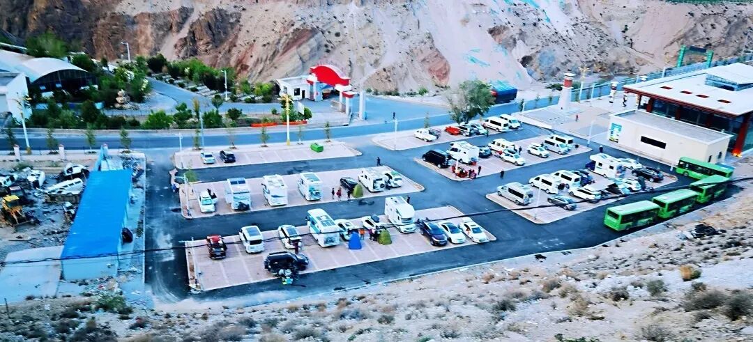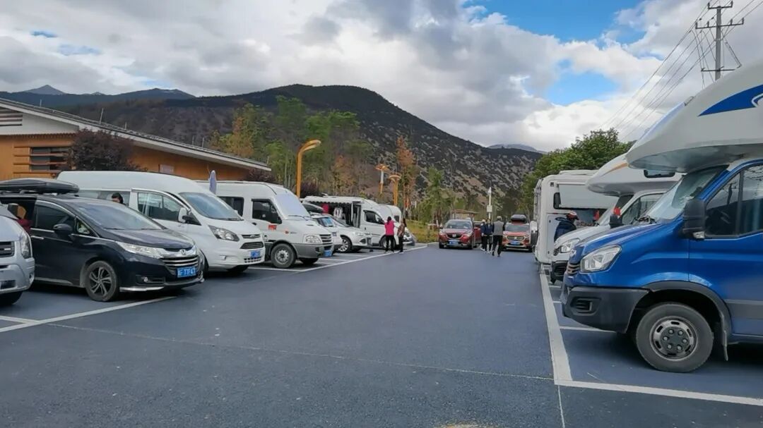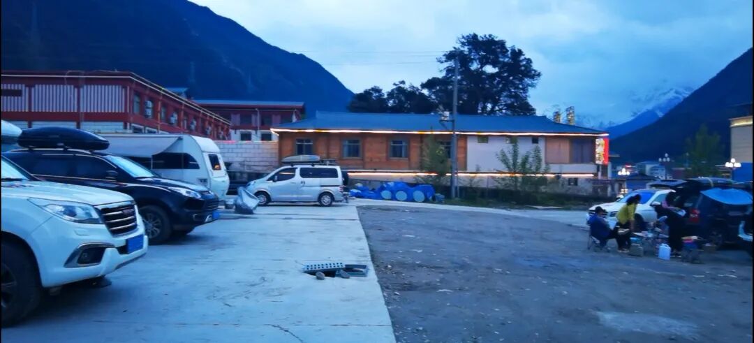 据车友介绍,米堆冰川游客中心停车场是个不错的驻车地,有水有卫,有餐厅有住宿,还有过水路面网红打卡地,转完景区较累不想走的话可就地驻车过夜,这也是本文中我本人唯一没有亲测的驻车地。