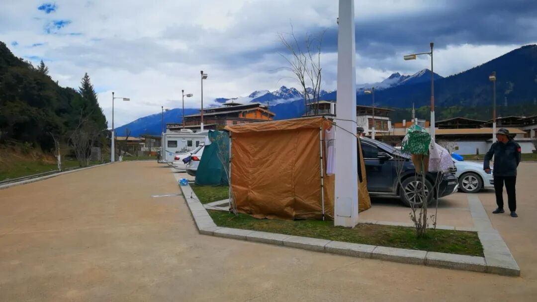 拉乌村村委会前侧小广场,这里海拔与芒康县城接近,水卫电方便齐全,完全免费,不仅有卫生室、小超市,还提供休息室,甚至可以去室内搭帐篷,堪称最美驻车地,强烈推荐广大房车床车车友在此驻车休整,但是不提倡去休息室烧水做饭以及私拉电线,最多给手机充电。