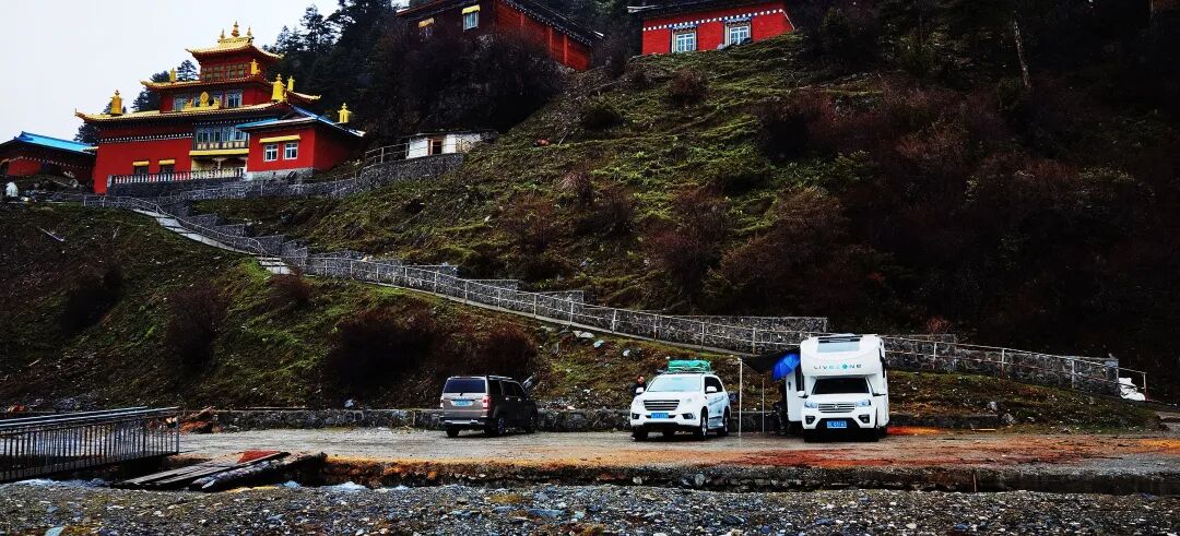另外,还可以走扎墨公路去趟墨脱,而我只是去到嘎龙拉隧道口就没往前再走了,隧道口有雪山草原,在寺庙前停车场驻车也不错,有水有卫,至于墨脱县,据说驻车条件也不错,只是进县城要收费。