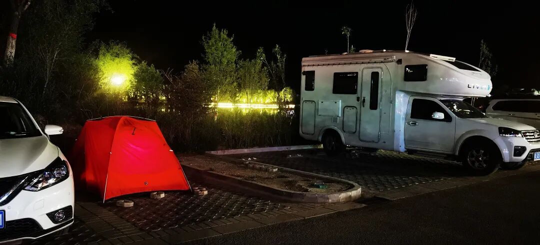 我们到达时由于较小的停车场已经停满,只好停在较大的停车场,然而遇到彻夜下雨,地面比较泥泞,又步行去一河之隔的小公园找到个地面硬化的小型停车场,这里的驻车条件很不错,水卫电齐全,然而一旁的床车车友带着电饭锅去卫生间用电做饭,后来被管理员切断了插座的电源,不过总的来说,这个驻车点还是非常不错的。