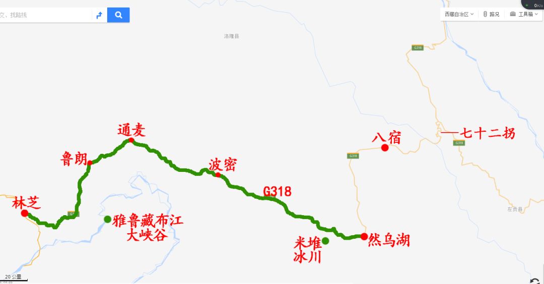 从昌都南下,再上318国道,经怒江七十二拐,到然乌湖、米堆冰川。到林芝,参观喇嘛林寺、巴松措。终于到拉萨,观文成公主剧,瞻仰布达拉宫,一睹圣湖羊卓雍错。